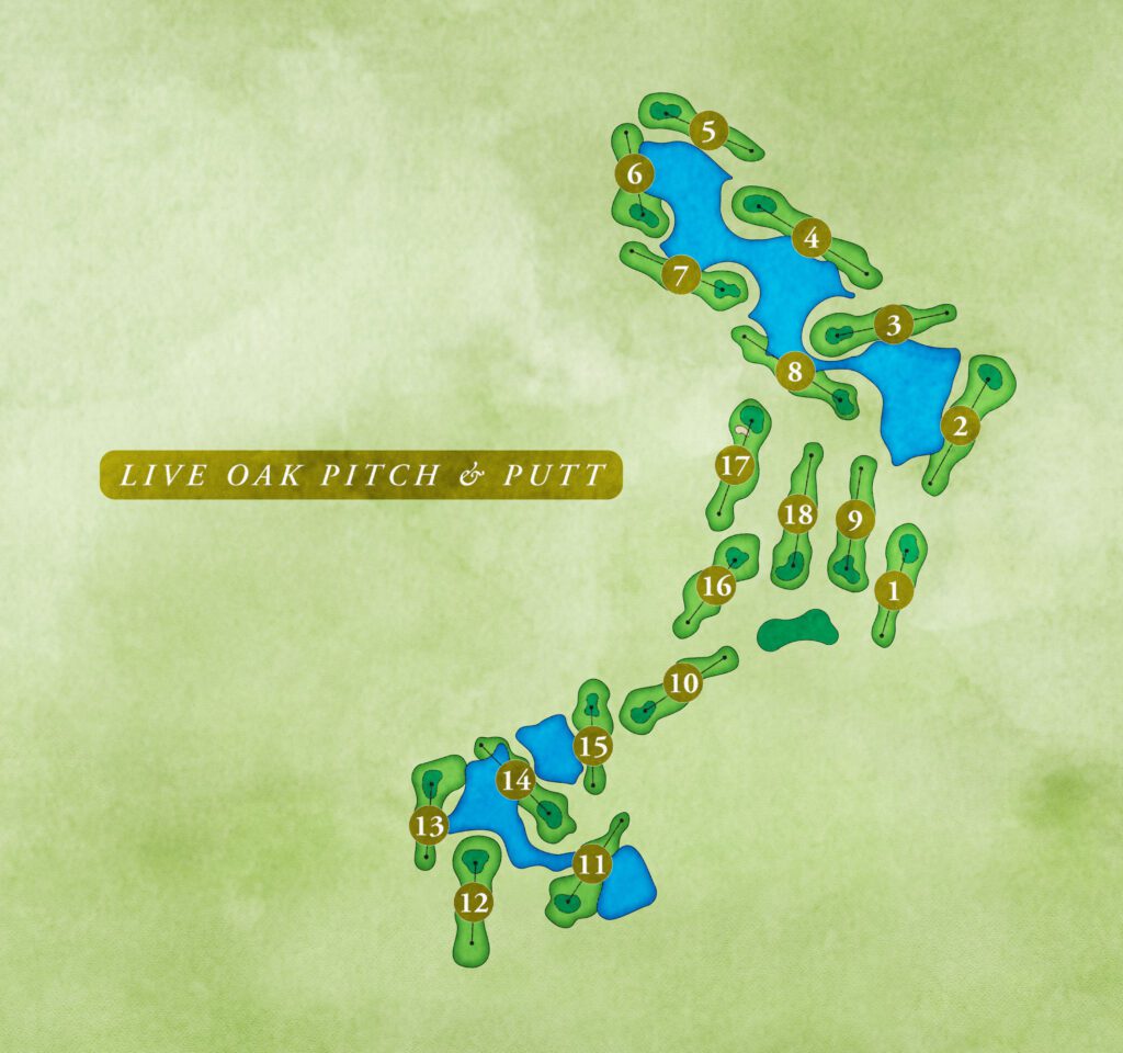 Live Oak Pitch & Putt course is just over the Southern Oaks Bridge near Sawgrass Grove and The Village of Well Point. This Pitch & Putt course offers a walking layout with 18 shorter holes, perfect for working on your short game or enjoying a relaxed outing with friends. The holes range from 46 to 112 yards, making it a great spot to focus on your short irons and putting technique.