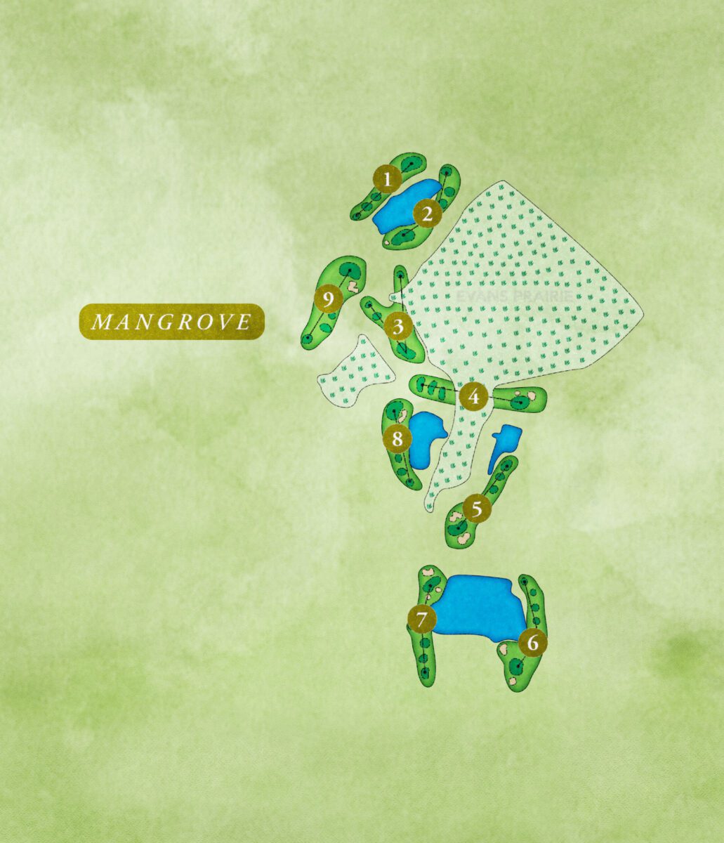 Mangrove is sure to please golfers of all abilities as they experience the constant breeze that always seems to blow across Evans Prairie, providing an extra challenge for club selection. Multiple sets of tees, with yardage ranging from 694 to 1,393, allows players to enhance their round with a variety of yardage options.