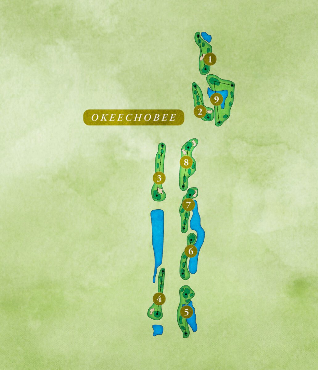 Okeechobee is the 36th addition to Executive Golf. Don’t let its beautiful views and changes in elevation fool you – Okeechobee is one of the more difficult courses in The Villages. Its finishing hole features multiple tee boxes with a forced carry over a lake, and one of the most picturesque final holes you will find anywhere. Okeechobee has tees for golfers of all abilities, ranging from 805 to 1439 yards.