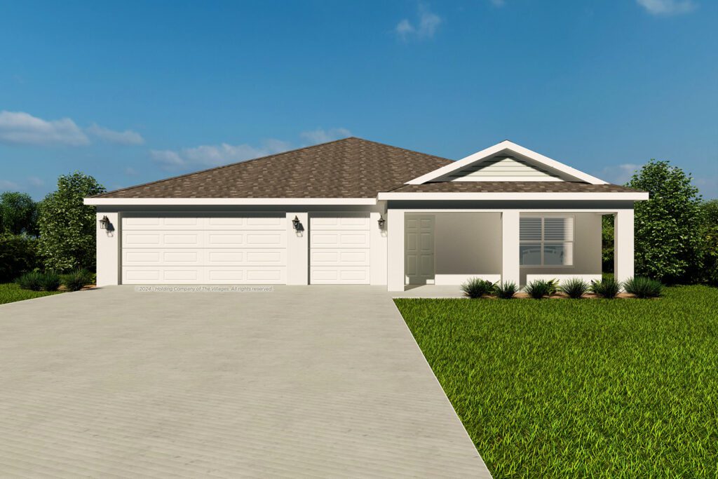 The Jubilee floor plan is part of our Designer Home series, with 3 bedrooms, 2 bathrooms, a 2-car and golf car garage, available in concrete with stucco finish. This model is where modern living meets comfort and convenience. The open floor plan naturally leads you through the living and dining areas, filled with natural light from the ample windows. The galley-style kitchen is the perfect setup for a chef who enjoys entertaining, complemented by the spacious lanai for even more room to host guests. The primary suite features twin walk-in closets and an en suite for ultimate privacy and relaxation. Plus, with a bonus golf car garage, you’re just a quick ride from everything The Villages has to offer!