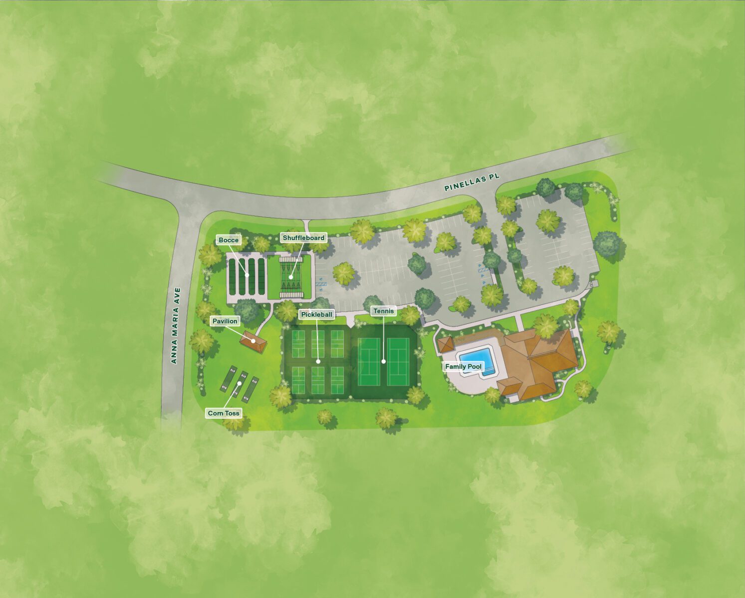 Recreation activities you love can be found in rooms named for popular Florida palms, where woven materials and palm fronds provide natural touches to the flooring, walls, and décor. Step out in the Florida sunshine to enjoy a variety of your favorite court or lawn games, or relax and unwind with family and friends at the family pool.