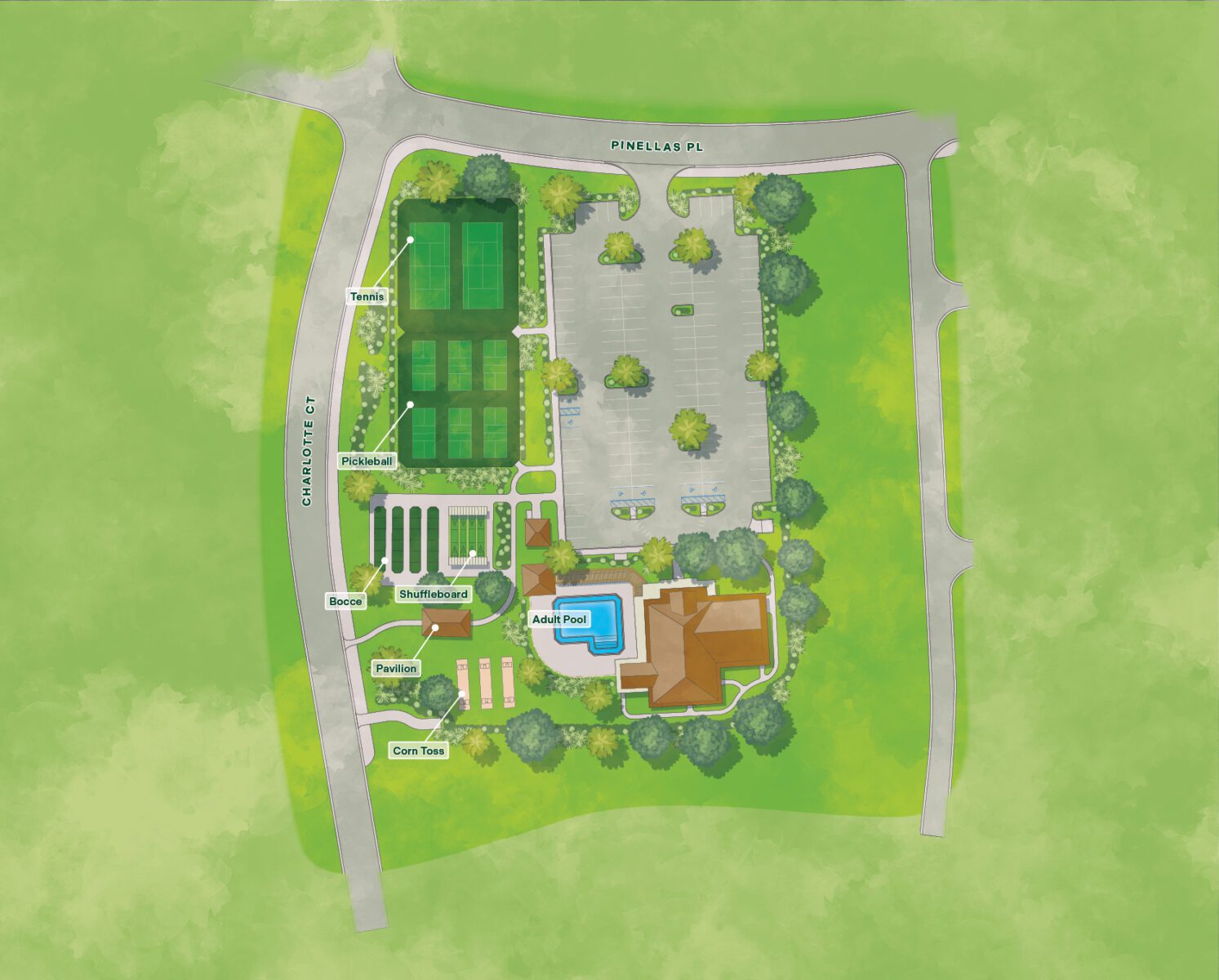 Soft coral pink and sandy beach hues paired with seashells galore bring you close to the shoreline here at Captiva Recreation. Shelling enthusiasts will recognize the variety of shells native to Florida’s Captiva Island throughout the bright and airy gathering rooms where Villagers can be seen participating in fitness classes or favorite social club meetings. You’ll find a variety of the outdoor recreation you love including court and lawn games and a family pool to relax and unwind.
