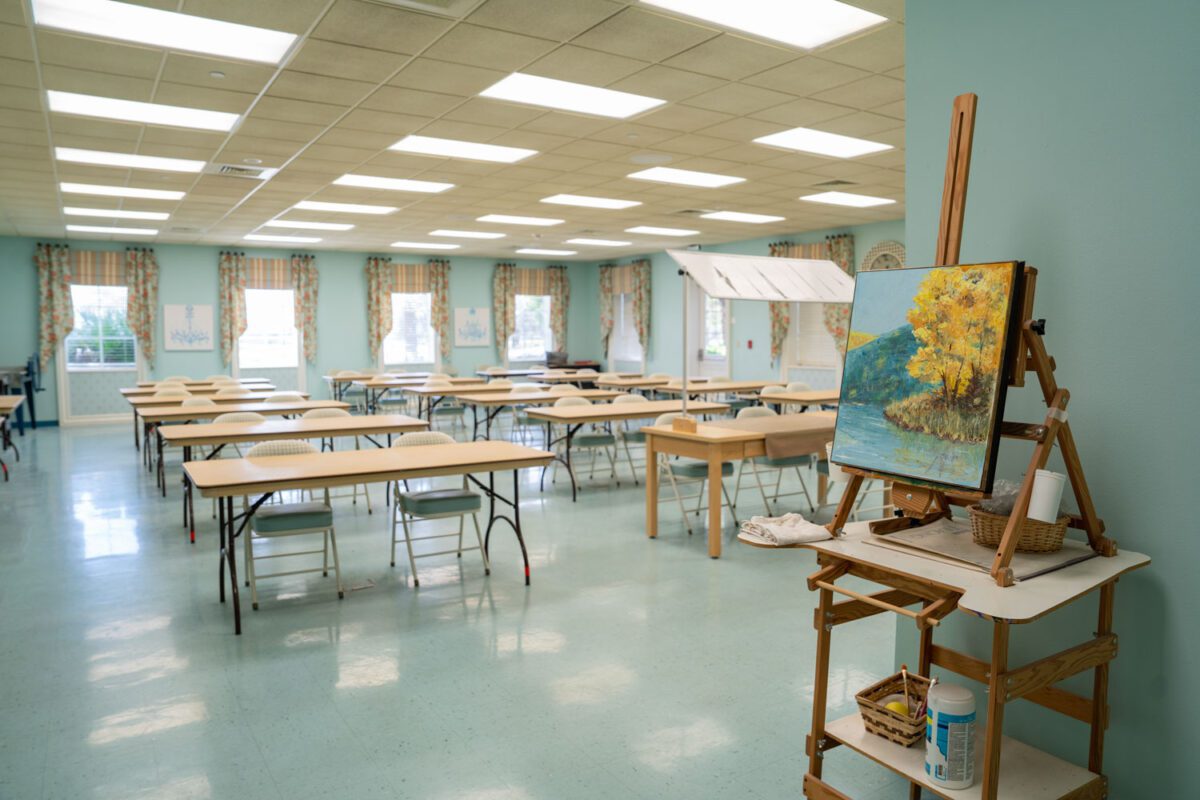 One step inside Colony Cottage Recreation and you’ve turned back time. Here you’ll find the rooms and walls adorned with antique furniture and fixings to make you feel just like you’re in an elegant shabby chic cottage. Vintage chandeliers brighten and give warmth to the card and craft rooms, as well as the performing arts theater where you’ll find an array of opportunities to play, learn, or perform alongside neighbors and friends. Improve your health at the Fitness Club or step outside and make a splash in the dedicated sports pool where Villagers enjoy a variety of engaging aquatic sports from water aerobics to the ever-popular water volleyball.