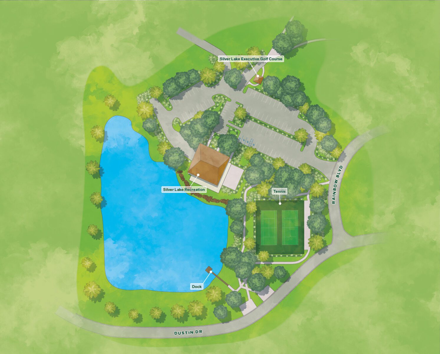 Gather with friends under the oak hammocks and take in the lakeside views here at Silver Lake Recreation. Sprawling oaks and lush landscaping create a beautiful backdrop for your next round of tennis or outdoor gathering. You’ll find peaceful lake views from the card and game room where you can also step outside to enjoy the expansive patio. Villagers can be seen filling this popular billiards room weekly and showing off their trick shots.