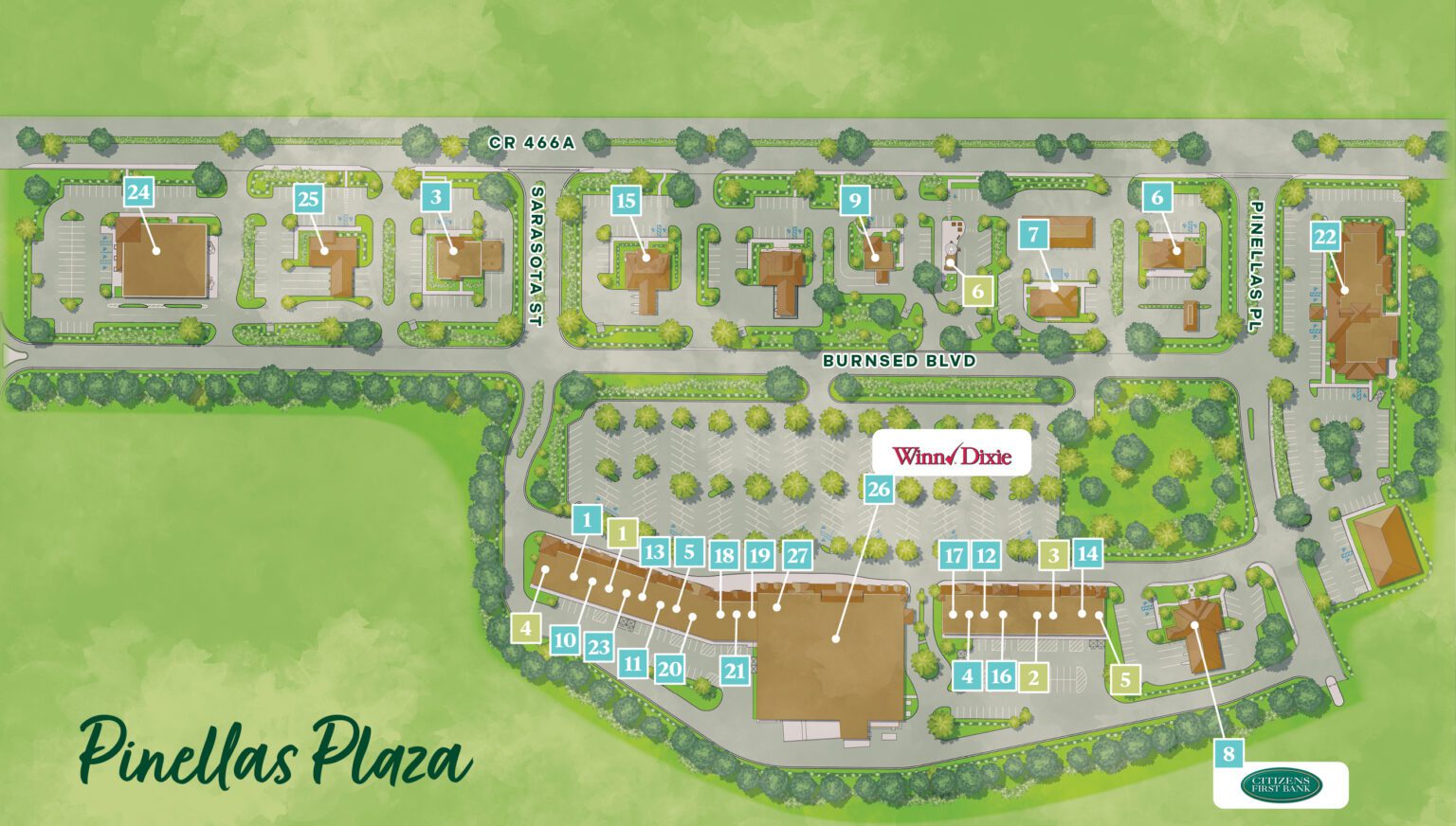 Enjoy the wide variety of shopping and dining that can be found at Pinellas Plaza including the daily essentials from Winn-Dixie and Walgreens, shipping services from the UPS Store, an array of beauty and health services, cellular sales and more — all convenient to your neighborhood by golf car.