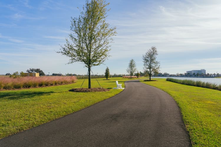 In the near future, Villagers will be able to explore Nadine Trail, the 1.28-mile paved pathway along Central Lake, offering gorgeous waterfront views and sights of Eastport’s evolving town center. Designed to be flat and accessible, the trail will provide a peaceful experience for walkers, joggers, and leashed pets. The loop will also pass Eastport’s many golf offerings along Central Lake and Hotel Eastport, showcasing what’s next for this expanding community hub.
