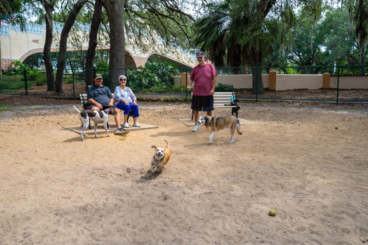 Your furry companions will enjoy freely socializing and exploring here as they get plenty of exercise with other large and small dogs. Water bowls and park benches are plentiful under the shady oaks, where friends love to gather for a good time.
