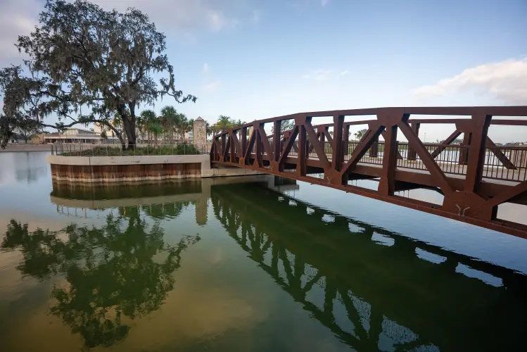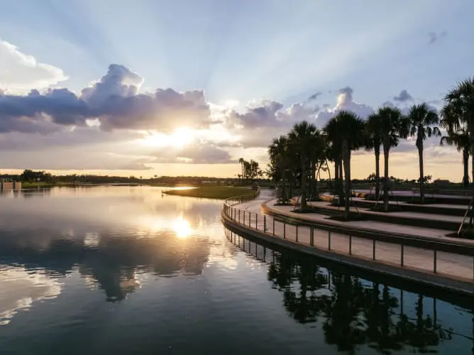 At Sunset Island on Central Lake, venture across the pedestrian bridge and step onto a serene island park surrounded by the peaceful waterfront views. Think picnics, an easy walk around the wharf, or settling in to watch the sunset. From the shoreline, you’ll be treated to a beautiful view of Eastport’s town center and the future Hotel Eastport just across the water.