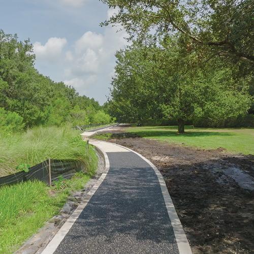 Coming this Fall to Lake Miona Recreation Center is a new walking trail for you to enjoy! This beautiful path starts at Lake Miona Recreation Center and winds through mature trees, next to Black Lake and Buena Vista Boulevard. The path is about 1.5 miles long, if you travel down and back. Watch the construction update above to see how the trail is coming along.