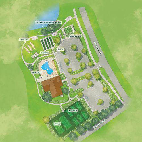 Located in The Village of Shady Brook and adjacent to The Village of Moultrie Creek, Saluki Recreation promises to be a hub of activity where residents and their guests can enjoy a variety of paw-sibilities when it comes to gathering with friends and neighbors for fun and laughter. From the family pool and exciting game room to the outdoor features like pickleball, tennis, corn toss, bocce, and shuffleboard.