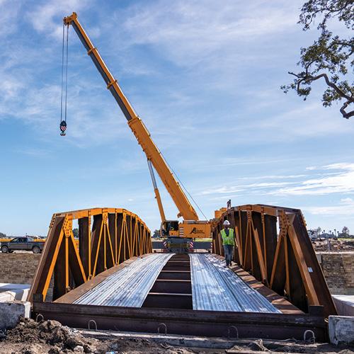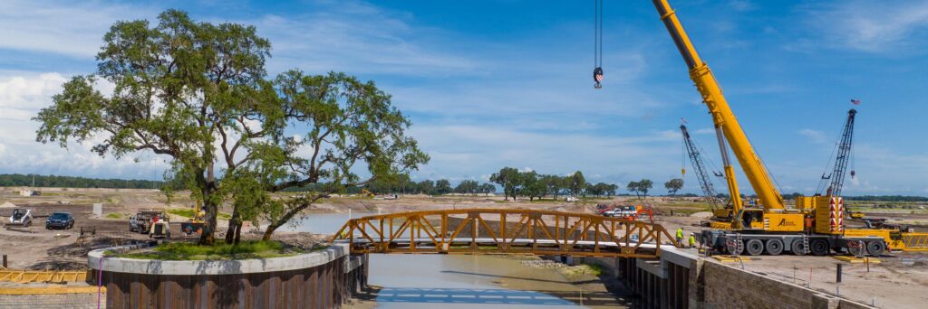 Welcome home Sunset Island Bridge! This unique, weathered steel bridge is now in place and ready for the next phases of construction at Eastport. Once open, this bridge is designed to connect folks to Sunset Island where they will be able to enjoy the views of Central Lake and Eastport.