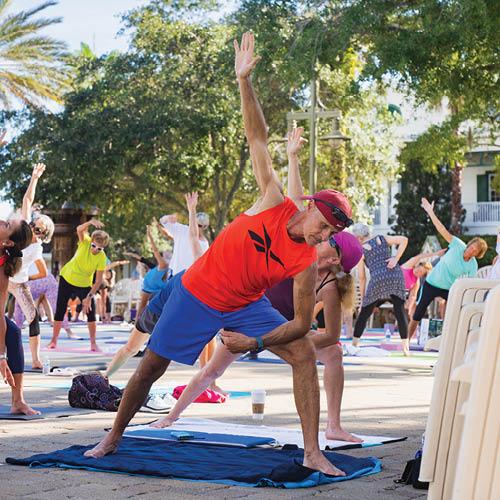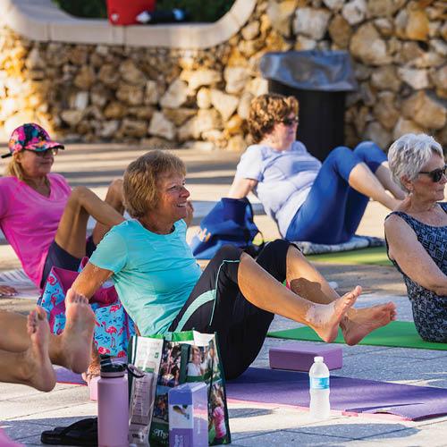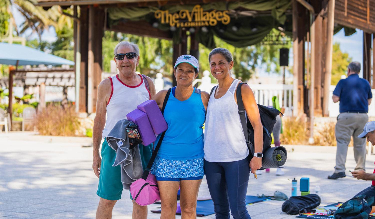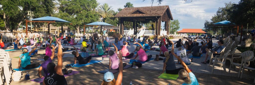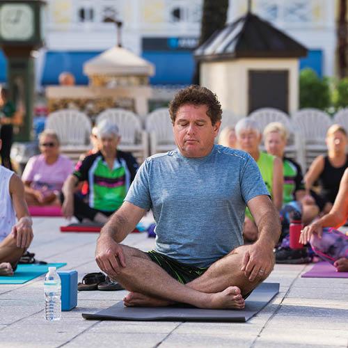 Namaste! September is National Yoga Month and we celebrated by practicing Yoga on the Square at Lake Sumter Landing. Yoga has several health benefits including increased flexibility, muscle tone, strength and energy. It also improves cardio and circulatory health. Whether you are a beginner or advanced, there are yoga classes available for everyone! Visit TheVillages.com/Calendar and search for “yoga” to find a local club.