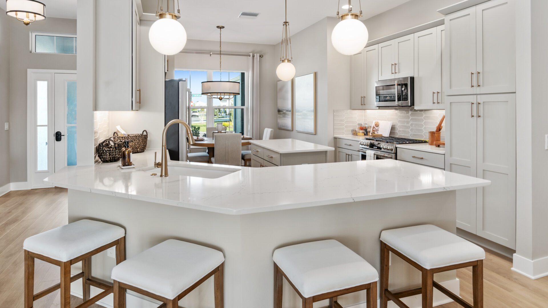 Waters Edge Designer Homes offer three and four-bedroom floor plans that combine high style with thoughtful planning to complement your active lifestyle. With open concept living areas and extra space for guests, you’ll find plenty of room for entertaining and enjoying The Villages lifestyle you’ve always imagined. Whether you’re hosting gatherings with friends and family, or enjoying a quiet evening, these homes are great for every occasion.