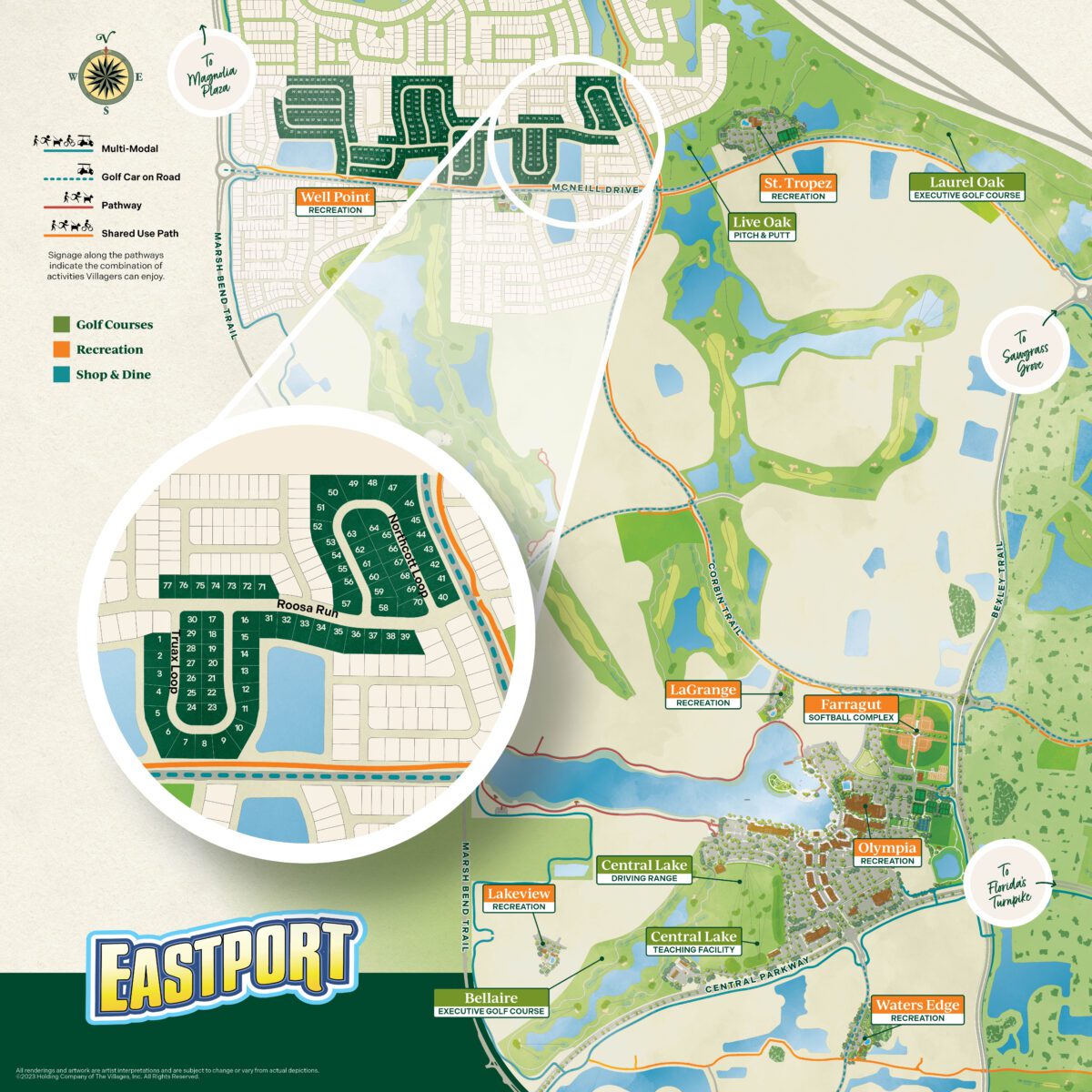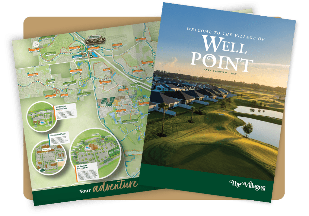 Living in Well Point means you’re in the center of all the action and just minutes away from world-class recreation. Take a short golf car ride to the nearby Well Point Recreation Center, where you can enjoy a quiet afternoon by the pool, or meet up with friends for pickleball and outdoor sports at the nearby Riverbend Recreation or the soon-to-open St. Tropez Recreation Center. If you love sports or your wanting to try new activities, Everglades and Ezell Recreation Complexes offer a wide range of indoor and outdoor games, from pickleball, softball, and even disc golf.