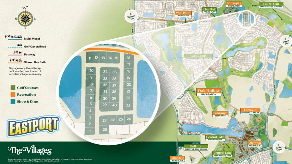 Surrounded by the scenic beauty of the Woodlands Championship Golf Club, The Village of Edenfield offers a central location just moments from the Eastport Town Center, where an exciting mix of recreation, shopping, dining, entertainment, and community come together. Golf enthusiasts can enjoy rounds at Woodlands Championship, Laurel Oak and Bellaire Executive courses, or Live Oak Pitch & Putt. And if you’re looking to improve your score, take a lesson with a golf pro at the Central Lake Golf Academy. Cross the Southern Oaks Bridge to discover even more golf, recreation, and entertainment near Sawgrass Grove spend a fun-filled day at the Edenfield and St. Tropez Recreation Centers just beyond your neighborhood.