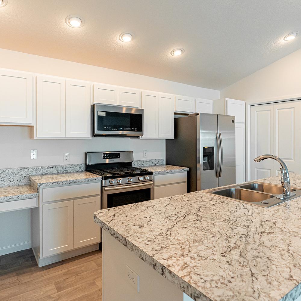 Open floor plans and available enhancements include trending kitchen designs with new layouts that offer more cabinet space and lots of room for entertaining.