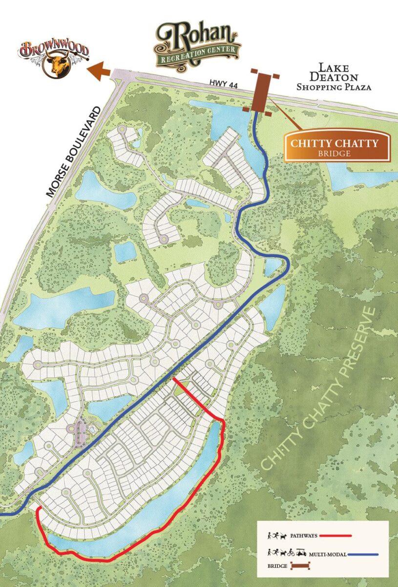 An intricate network of multimodal trails and pathways will meander through the nature preserves and the Chitty Chatty Bridge is well under construction and will connect to fun, recreation, shopping and golf.