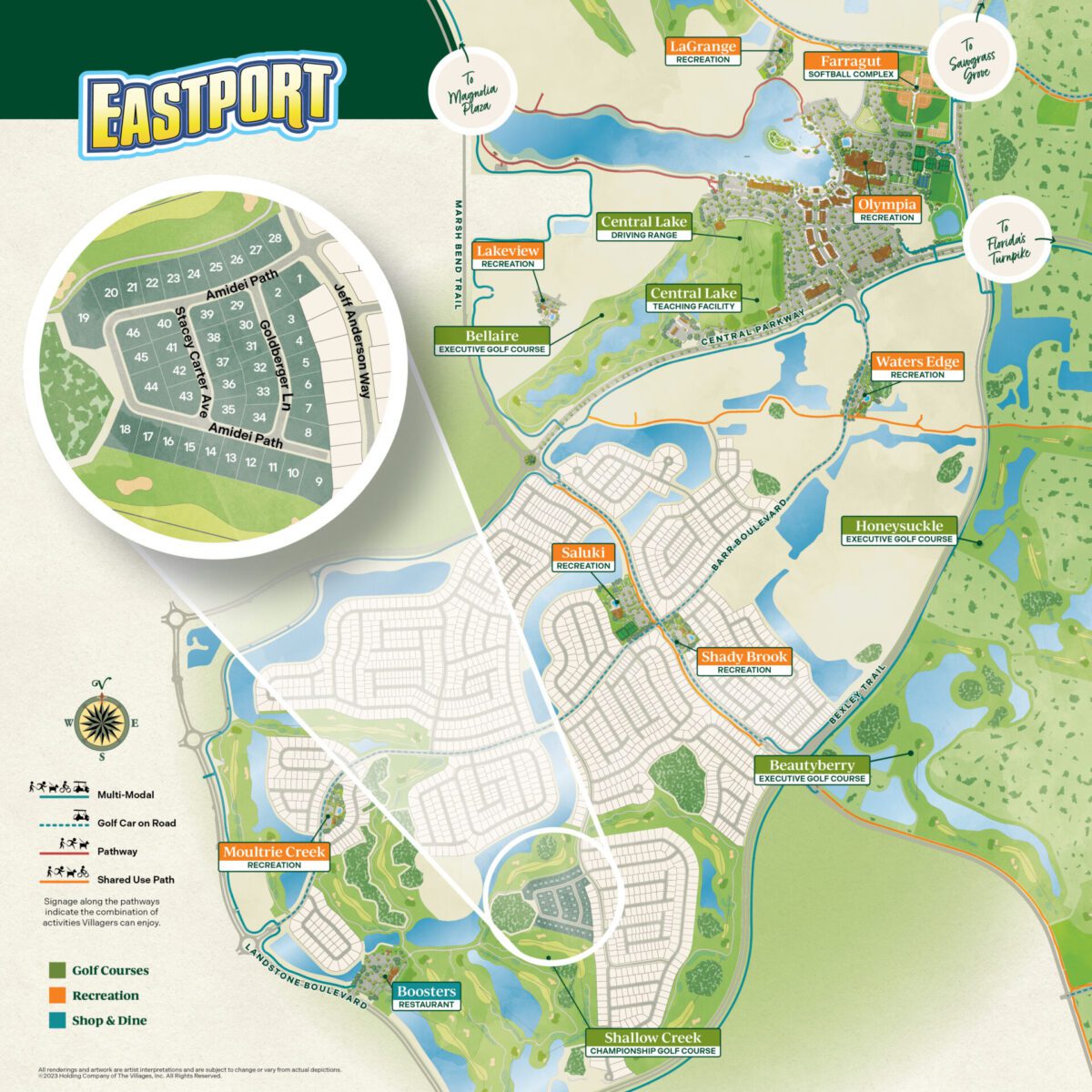 In addition to opportunities to play golf, Villagers who call this new neighborhood home will enjoy recreation fun at the nearby Shady Brook, Saluki and Moultrie Creek Recreation Centers.