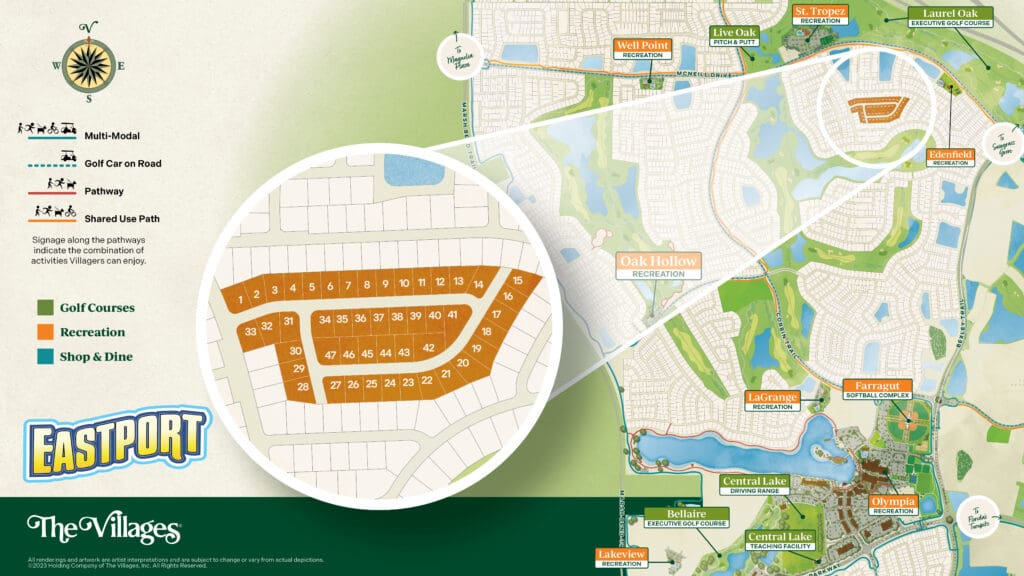 Welcome to The Village of Edenfield, where endless opportunities for golf, recreation, relaxation, and fun await just outside your door. Whether you’re an experienced golfer or just starting out, you’ll find a course that suits your level of play nearby. From the challenging Woodlands Championship to casual rounds at Bellaire and Laurel Oak Executive courses, plus expert lessons at Central Lake Golf Academy, there’s something for every golfer. For family fun, the St. Tropez Recreation Center offers a resort-style pool, game room and more—perfect for creating lasting memories with the grandkids. And just a short golf car ride away, the Olympia Recreation Complex awaits, with world-class amenities including indoor and outdoor courts, fields, a rock-climbing wall, and so much more.