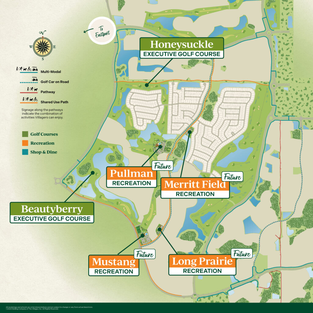 Nestled among the scenic fairways of the Honeysuckle Executive Golf Course and the future Timberland Executive Golf Course, The Village of Merritt Field offers a picturesque setting that enhances everyday living. From peaceful strolls along winding pathways to leisurely golf car rides to nearby gathering spots, each day brings new opportunities to enjoy the natural beauty and vibrant energy that make Merritt Field feel like home.