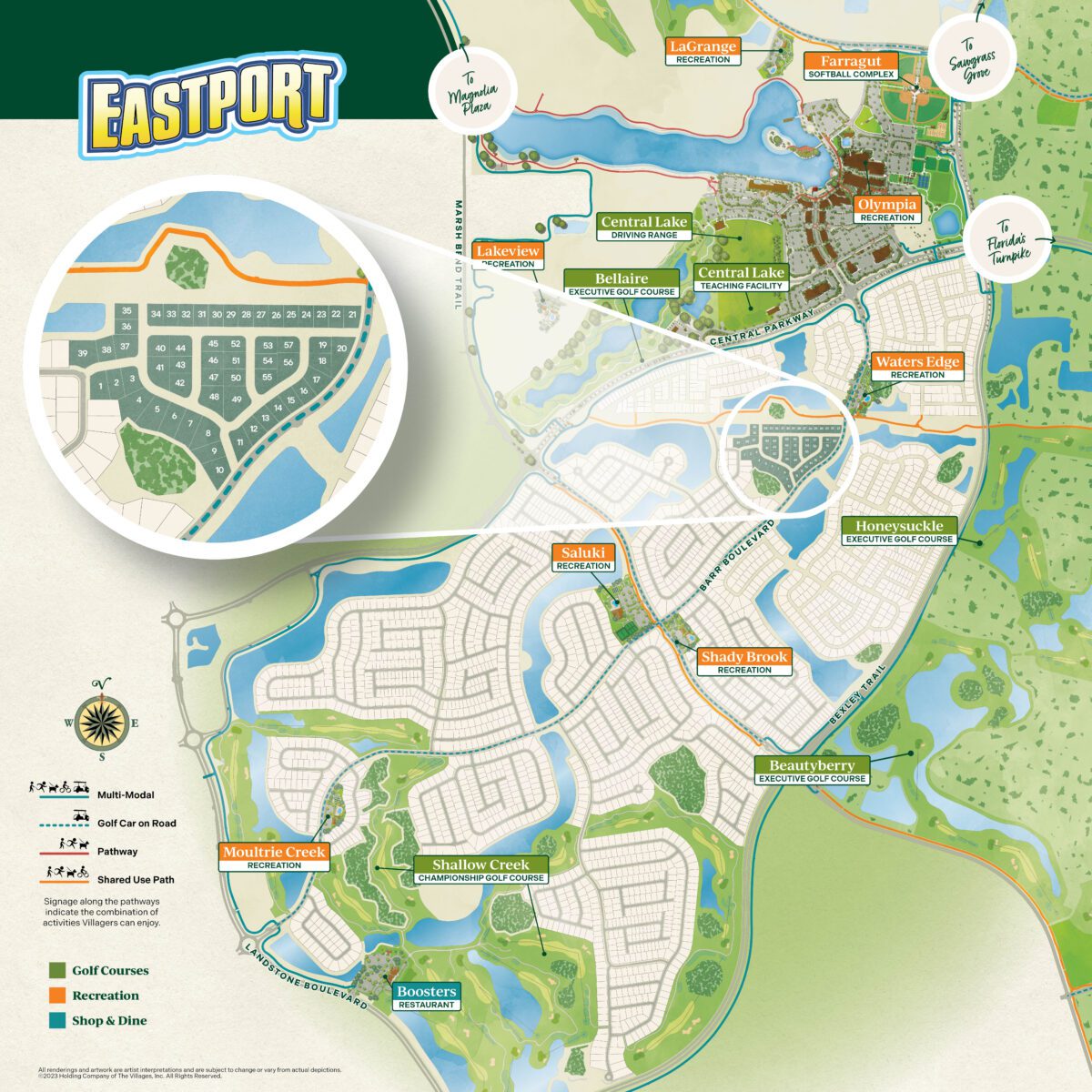 With unmatched proximity to all the fun that’s on the way to Eastport and a variety of lifestyle just outside your doorstep, you can start living your dream and enjoying everything that makes The Villages lifestyle truly exceptional in The Village of Waters Edge. Enjoy a picturesque round of golf at the nearby 18-hole Shallow Creek Championship Golf Course, special time with the grandkids splashing around at the family pool, or just around the corner you’ll find Waters Edge Recreation where you can soak in some sunshine and quality time with neighbors and friends. Whether dining and dancing the night away at nearby Sawgrass Grove, joining in on an exciting game of pickleball, or venturing down the pathway just outside your new neighborhood, life in Waters Edge offers endless opportunities to live The Villages lifestyle to the fullest!