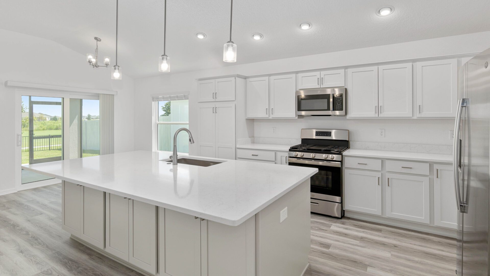 Waters Edge Verandas West offer generous space both inside and out, serving as the perfect canvas for your personal retreat. Featuring a harmonious blend of indoor and outdoor living, sliding glass doors effortlessly extend your living area to a private screened-in lanai and enclosed yard that’s great for hosting guests, room for your four-legged friends, or simply relaxing in your outdoor oasis. With popular features including island kitchens, 3-car and golf car garages, these Verandas offer plenty of room for entertaining and enjoying The Villages lifestyle you’ve always imagined.