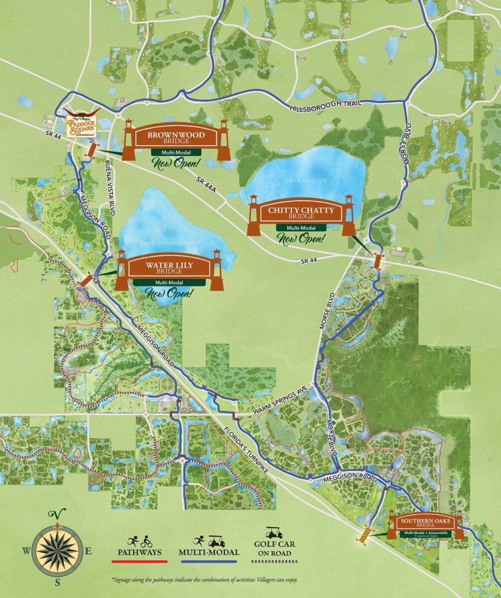 Explore new areas, recreation centers and experiences throughout The Villages with the opening of The Water Lily Bridge. The final bridge in the series of three that brings full connectivity to The Villages community. Choose your mode of transportation, stroll, cycle, golf car or Segway for an all new adventure.