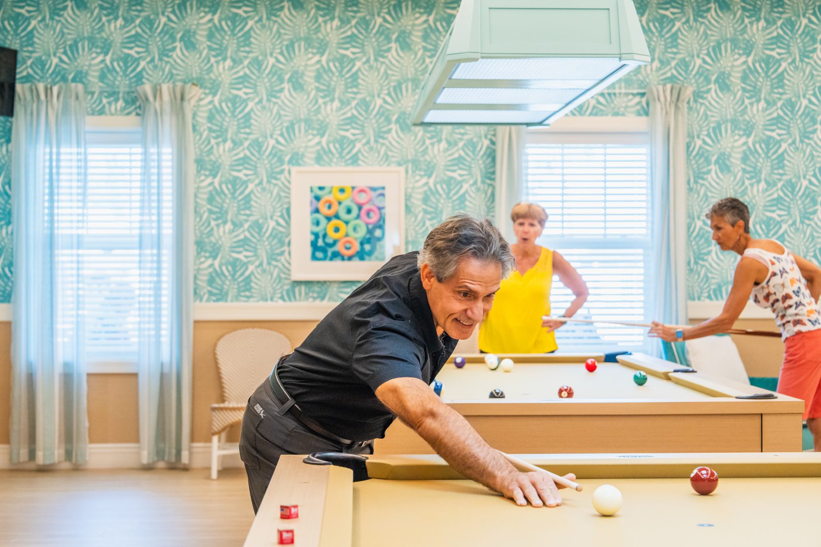 Residents recently celebrated with an unforgettable day filled with themed activities and plenty of laughter. A charming French mime made an appearance while guests toured the beautifully decorated spaces, capturing the essence of the Riviera with every detail. Lively games of bocce, shuffleboard, and table tennis added to the festive atmosphere, and many cooled off with a refreshing dip in the pool.
