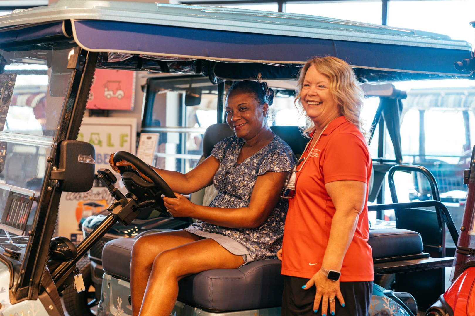 This spacious showroom and full-service center bring everything Villagers love about The Villages Golf Cars to the newest area in the community. With rooftop parking for added convenience and plenty of room to browse, rent, or service your golf car, this location is built with you in mind.