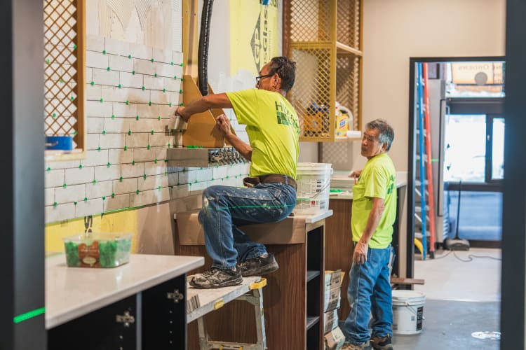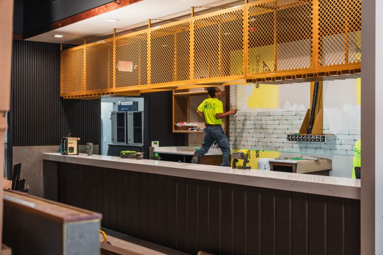 From a convenient pick-up window to updates in the dining room, including a beautiful bar, top-notch kitchen appliances, and gorgeous décor—the new space is taking shape. And of course, Piesanos signature granite stone pizza oven is at the heart of it all, getting ready to deliver that one-of-a-kind flavor we love.